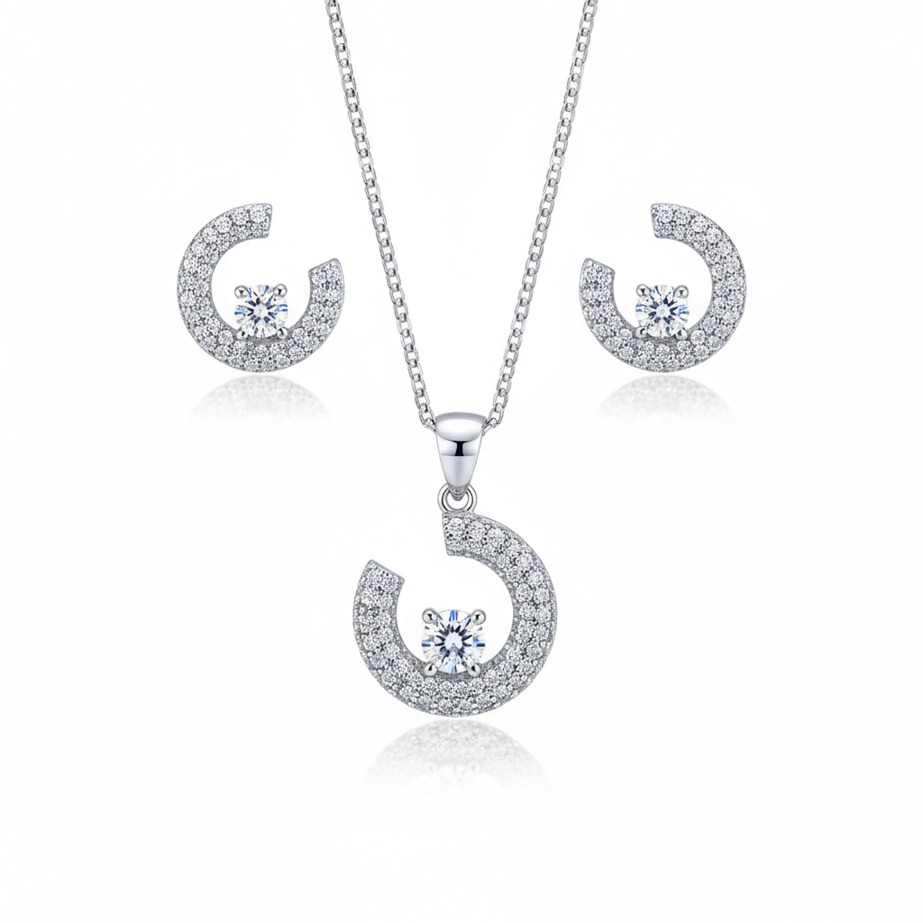 The Abstract Pendant Set in Sterling Silver is a bold expression of modern elegance. Featuring a unique and artistic design, this set includes a pendant with a classic chain and matching earrings, all finished in sleek silver. Zircon accents add a touch of refined sparkle without compromising the piece’s striking statement. Designed for the bold and confident woman, this pendant set transitions effortlessly from everyday elegance to special occasions. It’s also a great silver gifting option for those who appreciate standout designs with timeless appeal. Our designs are inspired by Silver jewellery trends from premium brands like Giva and Palmonas.