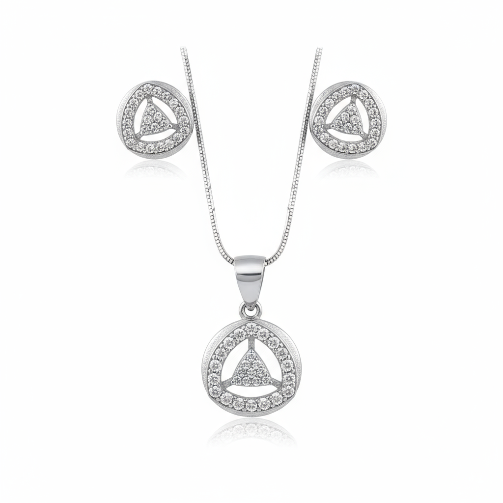 Discover the timeless elegance of our Pendant Sets in 925 Sterling Silver, crafted in a refined silver finish and adorned with premium zircon stones. Each set includes a matching pendant and earring pair, along with a classic minimal chain.
