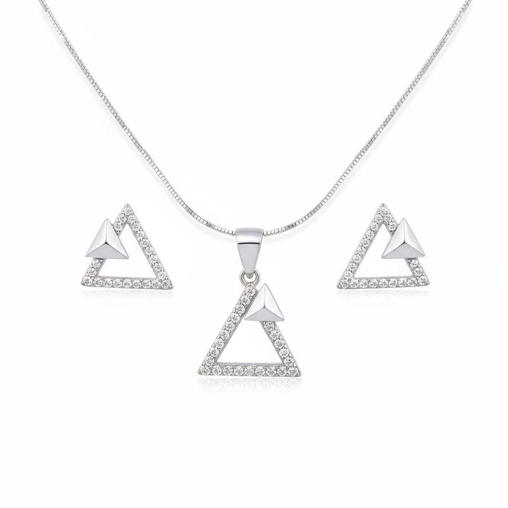 Discover the timeless elegance of our Pendant Sets in 925 Sterling Silver, crafted in a refined silver finish and adorned with premium zircon stones. Each set includes a matching pendant and earring pair, along with a classic minimal chain.