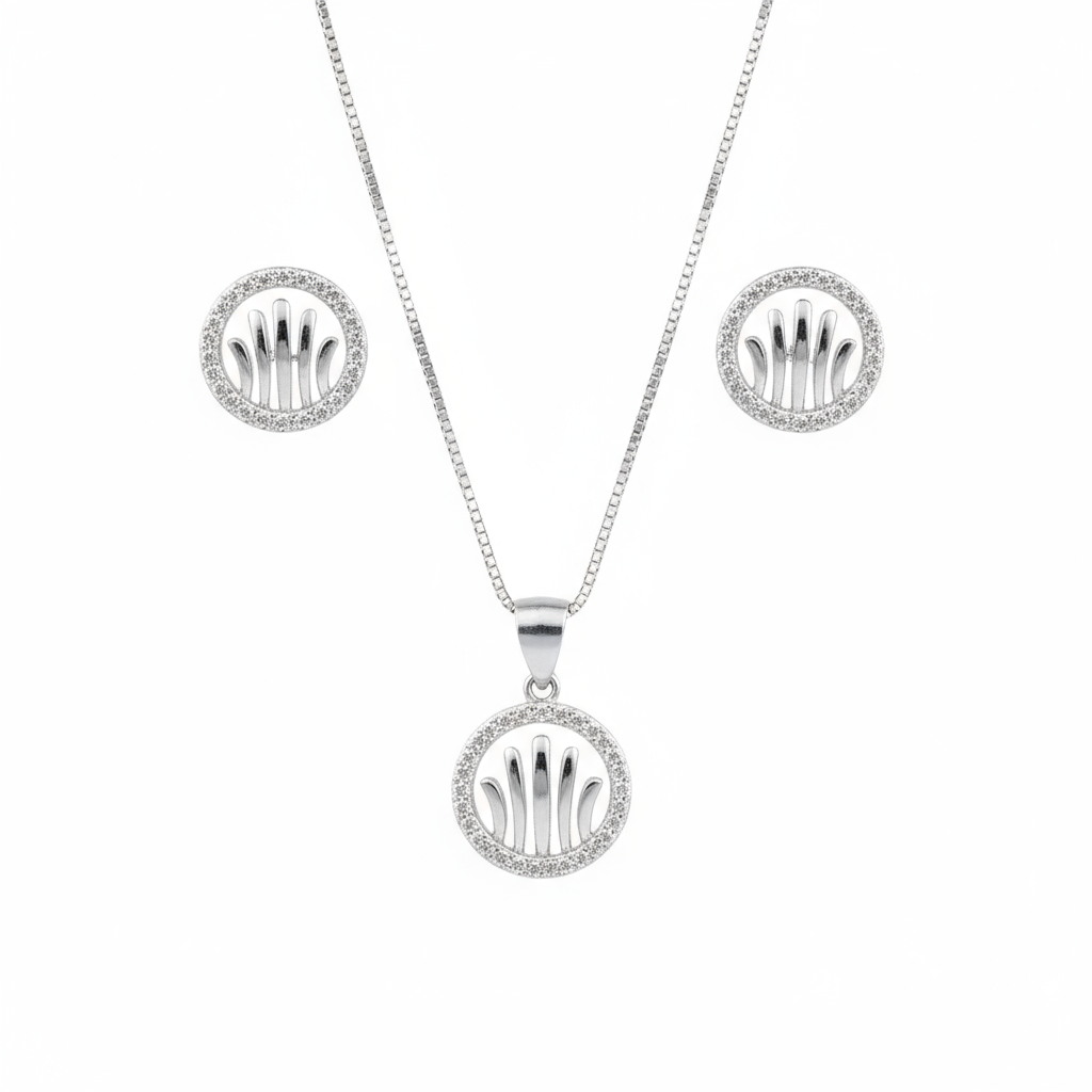 Discover the timeless elegance of our Pendant Sets in 925 Sterling Silver, crafted in a refined silver finish and adorned with premium zircon stones. Each set includes a matching pendant and earring pair, along with a classic minimal chain.
