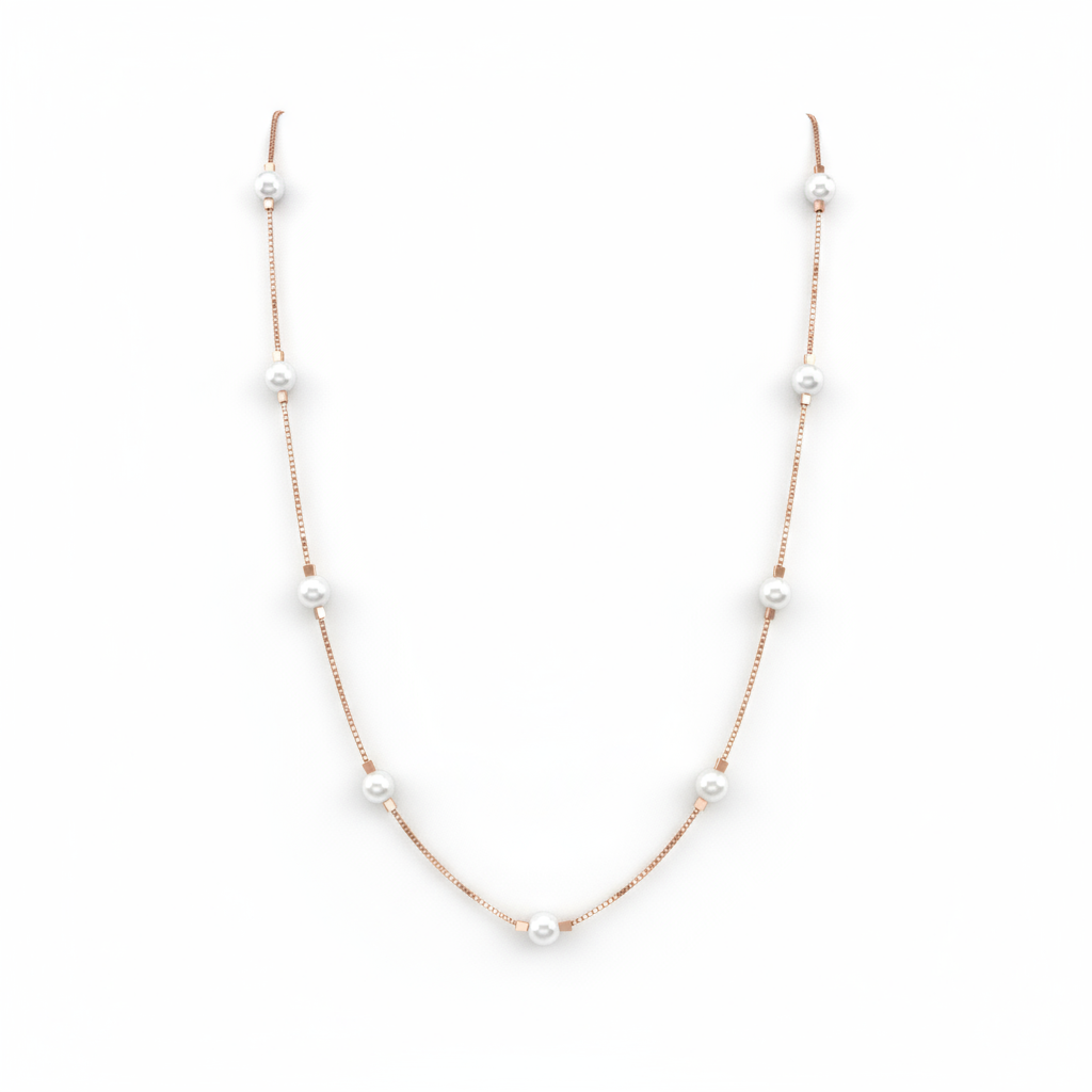Elegant rose gold single-layer necklace in 925 sterling silver, adorned with pearls throughout. A premium and timeless jewellery piece.